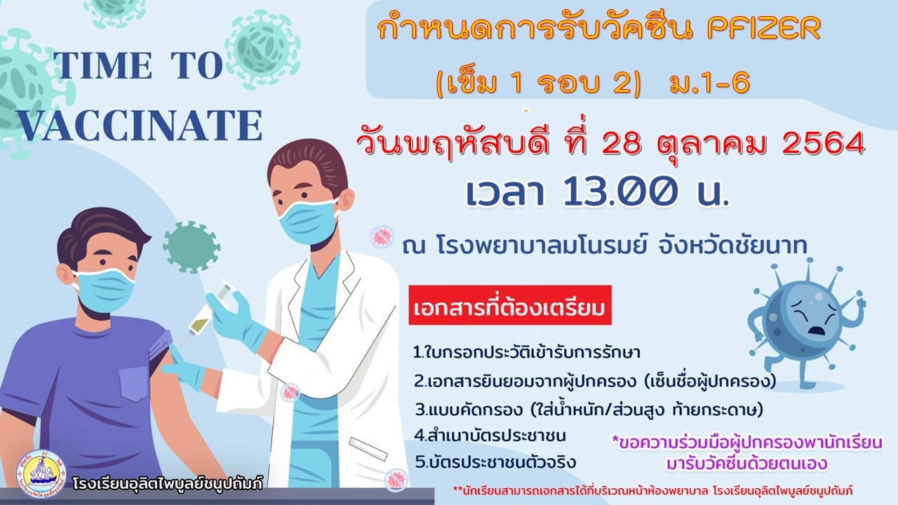 กำหนดรับวัคซีน(เข็ม 1 รอบ2 )ของนักเรียนชั้น ม.1-ม.6