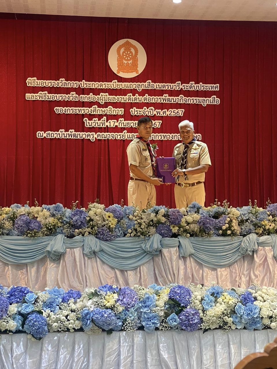 ขอแสดงความยินดีกับ ครูอาทิตย์ เทียนยวง ได้รับรางวัลยกย่องผู้มีผลงานดีเด่นต่อการพัฒนากิจการลูกเสือ(เข็มลูกเสือเสมาเชิดชูเกียรติ) ในพิธีมอบรางวัลประกวดระเบียบแถวลูกเสือเนตรนารี ระดับประเทศ