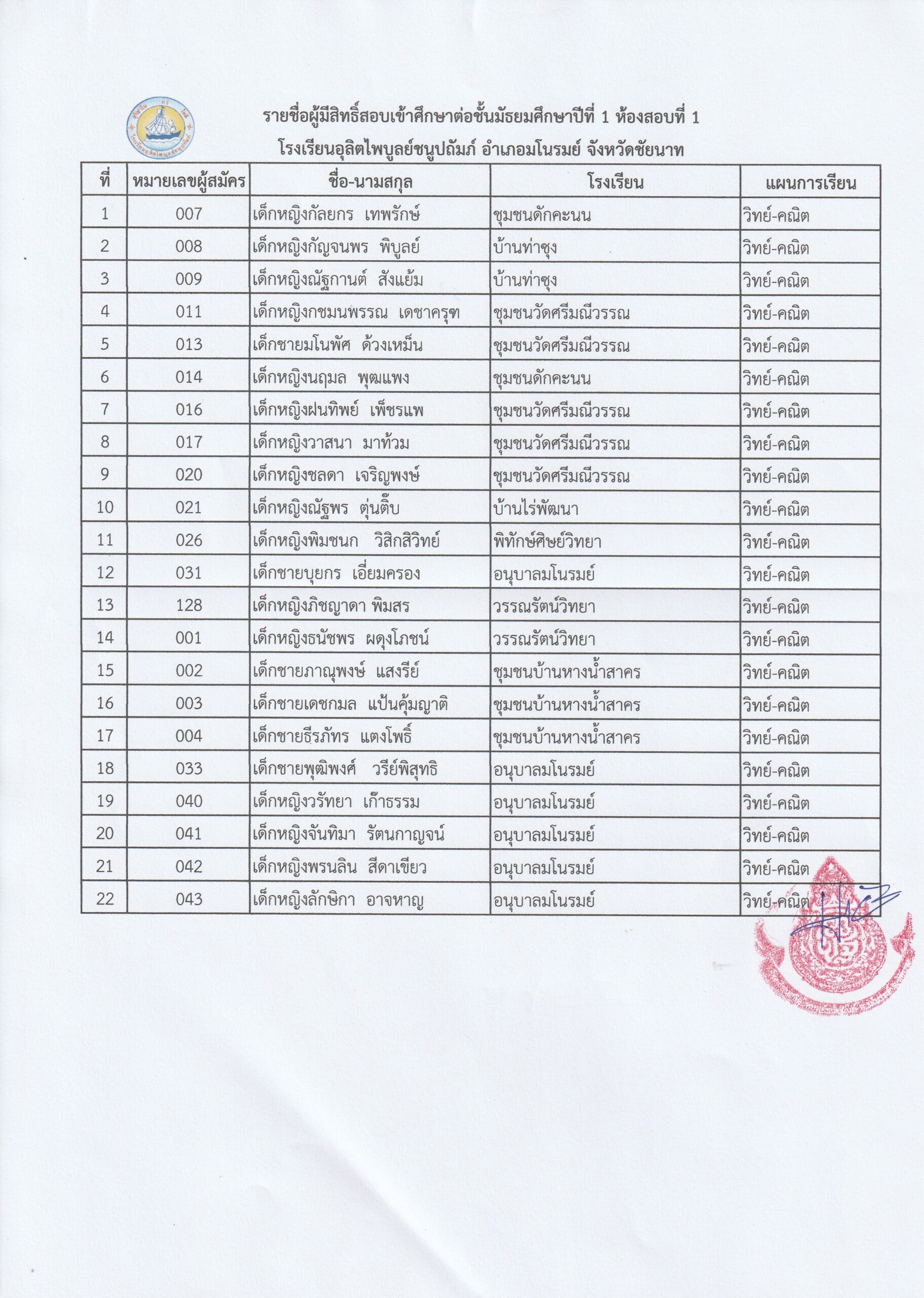 ประกาศรายชื่อนักเรียนที่มีสิทธิ์สอบคัดเลือกเข้าศึกษาต่อระดับชั้นมัธยมศึกษาปีที่ 1 และ 4 ปีการศึกษาา 2565 นักเรียนที่มีรายชื่อประกาศแนบท้ายให้นักเรียนดำเนินการดังนี้.
