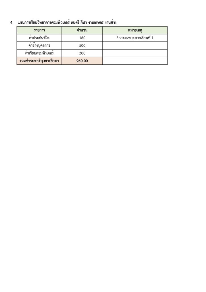 ตารางค่าบำรุงการศึกษา