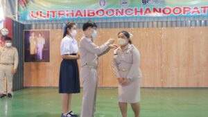 วันที่ 30 มิถุนายน 2565 นายเมธี วัฒนสิงห์ ผู้อำนวยการโรงเรียนอุลิตไพบูลย์ชนูปถัมภ์ ประดับอินธนู ให้แก่คุณครูจามร วันชุลี และคุณครูจุฑามาส หงิมเพ็ง ในโอกาสผ่านการประเมินและได้รับการแต่งตั้งให้ดำรงตำแหน่ง ครู (คศ.1)