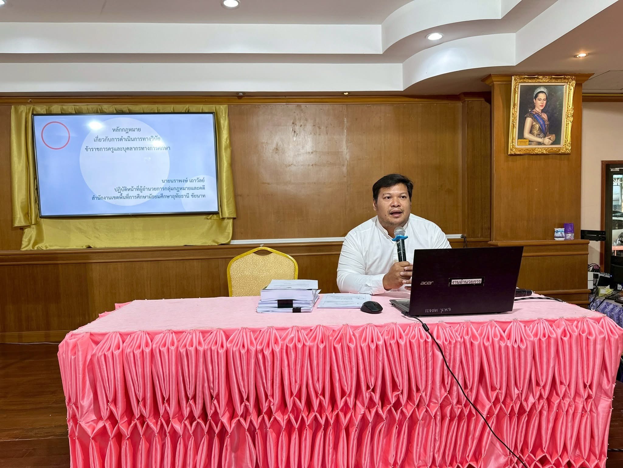 วันที่ 8 พฤษภาคม 2568 โรงเรียนอุลิตไพบูลย์ชนูปถัมภ์ได้จัดกิจกรรมอบรมวินัยและจรรยาบรรณวิชาชีพครู เพื่อเสริมสร้างความเข้าใจในบทบาท หน้าที่ และจริยธรรมในการประกอบวิชาชีพครู ตามแนวทางของคุรุสภา โดยมุ่งเน้นให้ครูทุกคนมีความตระหนักในความรับผิดชอบ ทั้งต่อผู้เรียน ต่อวิชาชีพ และต่อสังคม โดย นายนราพพงษ์ เถาวัลย์ นิติกร ปฏิบัติหน้าที่ ผู้อำนวยการกลุ่มกฎหมายและคดี สพม.อุทัยธานี ชัยนาท ณ ห้องประชุมศรีสำเภา โรงเรียนอุลิตไพบูลย์ชนูปถัมภ์