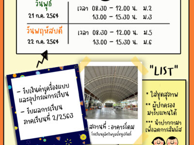 แนวทางการจัดการเรียนการสอนในรูปแบบ On-Hand 1/2564 […]